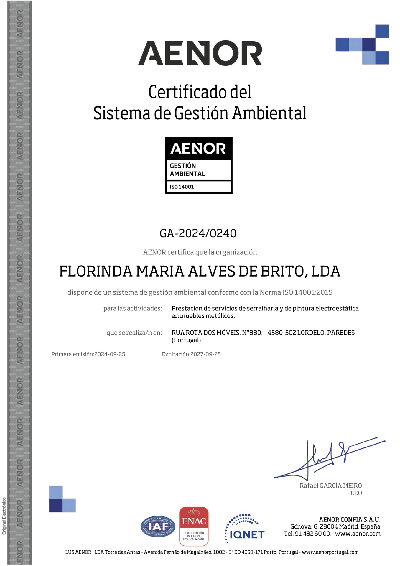 Melhorar continuamente o sistema de gestão da qualidade e do ambiente, elevando o nosso desempenho organizacional e ambiental.